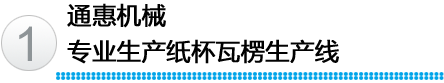江陰市通惠機(jī)械有限公司,專業(yè)生產(chǎn)紙杯瓦楞生產(chǎn)線,研發(fā)的中空紙杯專用瓦楞杯生產(chǎn)線,S楞、菱形、圓形、點(diǎn)狀形瓦楞紙杯專用生產(chǎn)線。同時(shí),還生產(chǎn)單面瓦楞紙板生產(chǎn)線。